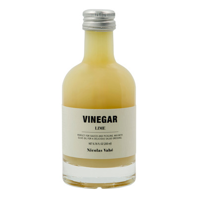 Nicolas Vahé Vinegar Lime är producerad i Europa och levereras i en dekorativ glasflaska som gör sig bra i köket. Den har en balanserad syra och är lätt att dosera. Använd den i smakrika rätter eller experimentera med söta recept där syran kan balansera smaken.