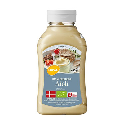 DAVA Aioli eko är en krämig och smakrik ekologisk vitlöksmajonnäs gjord på danska äggulor och dansk rapsolja. Aiolin har en utsökt, balanserad smak och en mjuk konsistens som gör den idealisk som tillbehör till många rätter. Aiolin är producerad med fokus på kvalitet och ekologi, så att du kan njuta av en produkt som är bra för både dina smaklökar och miljön.