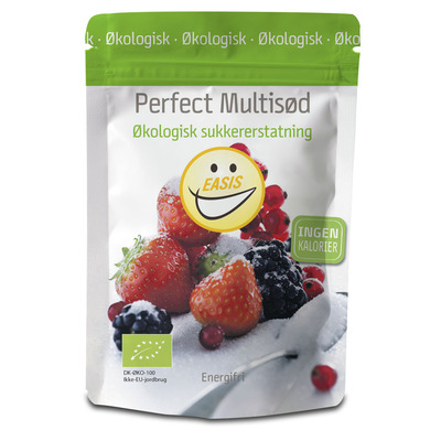 Ekologisk Perfect Multisød från Easis är ett 1: 1 sockerersättningsmedel baserat på det kalorifria sötningsmedlet erytritol. Erytritol ger samma fyllighet som socker och kan därför användas till allt - till exempel vid frukostbordet, i bakverk, gröt, i kaffe etc. Erytritol är dock något mindre söt i smaken än vanligt socker.