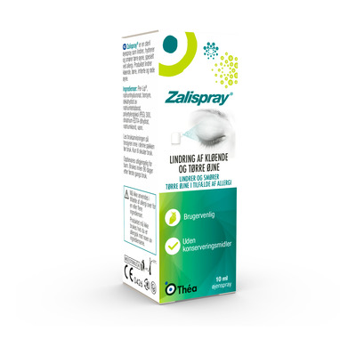 Zalispray Ögonspray är en medicinteknisk produkt som är avsedd att lindra klåda, irritation och torra ögon som orsakas av allergier. Den sterila, liposomala ögonsprayen stabiliserar tårfilmen genom att stödja lipidlagret och minska avdunstningen. Ögonsprayen innehåller liposomer, antioxidanten perillafrön och hyaluronsyra som återfuktar och skyddar ögonen.