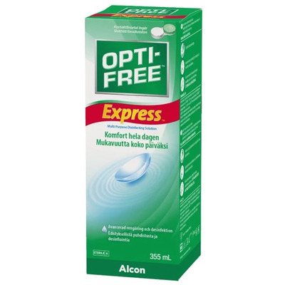 Opti-Free Express är en linsvätska som rengör, desinficerar och lagrar alla typer av mjuka kontaktlinser.