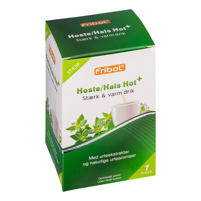 Detta pulver är baserat på extrakt av timjan och lakrits, som vid blandning förenar starkt och varmt. Just denna kombination är något som många har nytta av vid förkylningssymptomen. Fribol Varm dryck hosta/hals Hot+ lindrar halsont, täppt näsa och hosta orsakad av förkylning. Pulvret löser sig snabbt i vatten och när du andas in ångan från drycken kommer du att kunna känna att frisk luft passerar genom näsan.