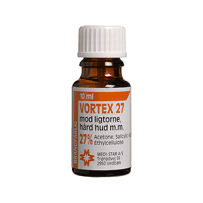 Vortex 27 innehåller salicylsyra som löser upp det yttersta hudlagret och liktornar eller och hård hud försvinner gradvist.