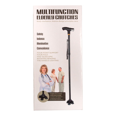 Nygaard Tønder hopfällbar fyrpunktskäpp med LED-lampa för ökad stabilitet och synlighet