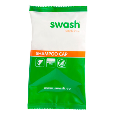 Shampoo cap utan doft från Swash är en badmössa som tvättar håret på kortare tid än vid vanlig hårtvätt. Schampot passar alla hårtyper. Badmössan innehåller en sköljfri lotion som rengör håret noggrant och är pH-neutralt.