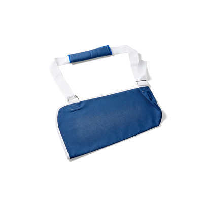 Denna armslynga från Vitility skapar vila för axel, arm och hand. Om du har skadats kan armslyngan hjälpa till att skapa vila. Bandet placeras över huvudet på den motsatta axeln och armen placeras i påsen. Detta skapar vila för armen så att den kan läka bättre.