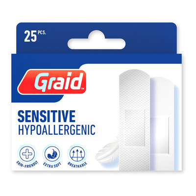 Graid Sensitive Extra Soft Plåster är speciellt utformat för personer med känslig hud som behöver ett extra skonsamt skydd mot mindre skärsår och skrapsår. Det här allergivänliga plåstret är tillverkat av mjuka material som andas och minimerar risken för hudirritation. Med sin extra mjuka känsla och enkla borttagning är det perfekt för både barn och vuxna. Plåstret levereras i en förpackning med 25 st och är steriliserat för säker och hygienisk användning. Det är perfekt för daglig användning och ger ett tillförlitligt skydd samtidigt som det är bekvämt för huden.