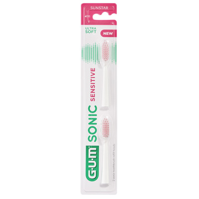 Gum Sonic Sensitive Borsthuvuden Ultra Soft till Gum Sonic Sensitive Tandborste ger en mycket skonsam och djupgående rengöring av tänderna. Tandborsten är särskilt bra för känsliga tänder och ömt, svullet tandkött. Den bidrar till att hålla ditt tandkött och dina tänder friska med sina soniska vibrationer som flyttar borsten från sida till sida och hjälper till att lösgöra mer plack på ett lätt och behagligt sätt.
