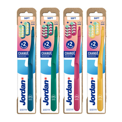 Jordan Change 2 huvuden + 1 skaft - Soft är en tandborste utformad med hållbarhet och effektivitet i åtanke