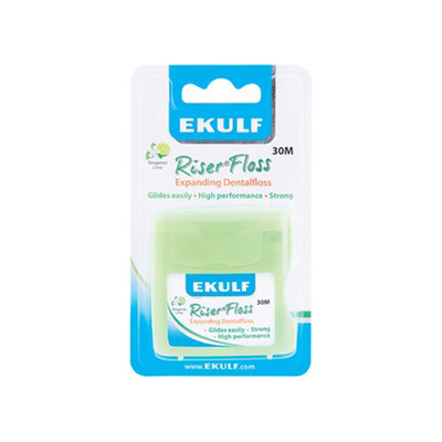 EKULF Riser Floss är en patenterad tandtråd som rengör tänderna effektivt genom att expandera vid friktion. Genom utvidgningen av tandtråden, justeras den individuellt efter tänderna.