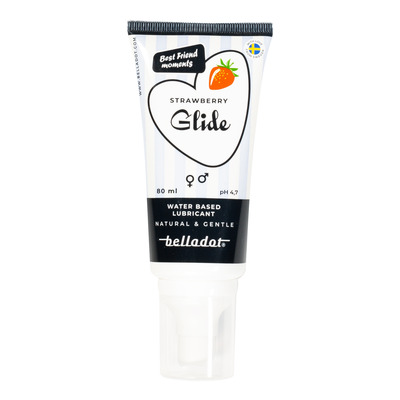 Belladot Glidmedel med jordgubbssmak är ett vattenbaserat glidmedel med en behaglig smak och doft av jordgubbar. Det är framtaget för att öka komforten under intima stunder och är skonsam mot den känsliga huden i intimområdet. Glidmedlet är pH-balanserat med ett värde på 4,7 och känns mjukt och behagligt att använda.