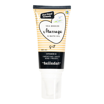 Belladot Seabreeze massageolja är speciellt utvecklad för sensuella stunder. Massageoljan kladdar inte och lämnar huden silkeslen. Levereras i praktisk aluminiumflaska med pumpe. Den har fin doft av hav.