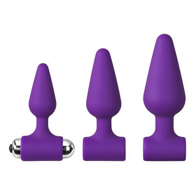 Baseks nybörjarset med vibrerande buttpluggar är perfekt för dig som vill börja med anal stimulering i en säker och kontrollerad takt. Setet består av tre pluggar i stigande storlekar och en bulletvibrator som passar i alla tre. Du får utforska olika nivåer av fyllighet och njuta av 7 vibrationsmönster som enkelt aktiveras via en knapp på vibratorn.