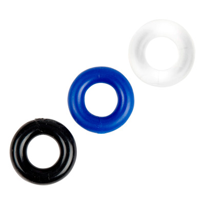 Baseks Triple Penis Ring Set innehåller tre flexibla penisringar för längre och kraftigare erektioner