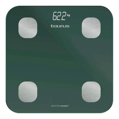TAURUS Badrumsvåg Smart Inception Connect visar inte bara din vikt utan mäter också upp till 11 kroppsmått inklusive kroppsfettprocent, muskelmasseprocent, skelettmasseprocent, vattenprocent, BMI, ämnesomsättning, bukfettindex, total muskelmassa, kroppstyp och kroppsålder via Bluetooth-anslutning till Taurus Connect-appen. Vågen registrerar data för upp till 14 användare.