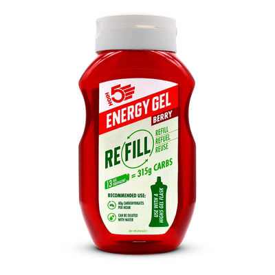 High5 Energy Gel Refill Berry är en energigel med bärsmak i en stor flaska som rymmer cirka 13 portioner. Den är tillverkad med flera kolhydratkällor och ger 23 g kolhydrater per portion. Gelen är lättsmält och idealisk vid intensiv träning där energinivån snabbt sjunker. Den kan användas med High5:s återanvändbara gelflaska, vilket minimerar användningen av engångsplast och gör det enkelt att justera mängden.