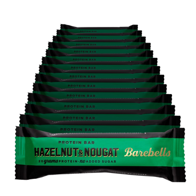 Barebells Hazelnut & Nougat är en 20 g proteinbar som kombinerar den fylliga smaken av rostade hasselnötter med mjuk, krämig nougat och ett överdrag av mjölkchoklad. En smakupplevelse som får dig att känna dig som en dessert - men utan tillsatt socker.