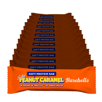 Barebells Salt Peanut Caramel är en utsökt och mättande 16 g proteinbar utan tillsatt socker, som kombinerar den klassiska smaken av salta jordnötter och mjuk karamell överdragen med krämig mjölkchoklad.