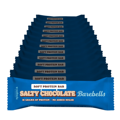 Barebells Salty Chocolate är en 16 g proteinbar som kombinerar rik och intensiv chokladsmak med en hint av salt för en perfekt smakbalans. Baren har en mjuk konsistens med en krämig chokladfyllning och är överdragen med mjölkchoklad - en favorit till både vardag och träning.