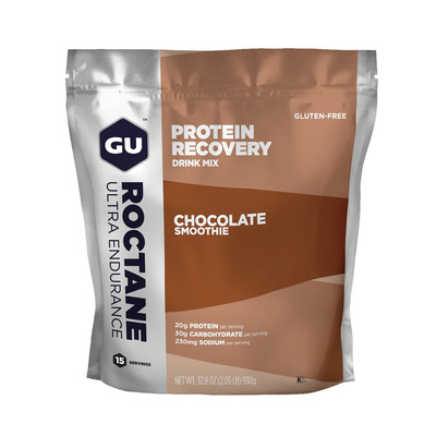 GU Energy Labs Roctane Recovery Chocolate Smoothie är en välsmakande proteindryck. Med sin rika chokladsmak och näringsrika ingredienser är denna dryck idealisk efter träningen. Varje portion innehåller en blandning av proteiner, kolhydrater och elektrolyter.