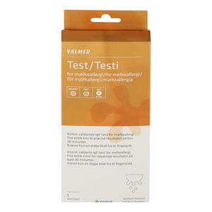 ValMed Mjölkallergitest är ett snabbt och enkelt hemtest som screenar för mjölkproteinallergi genom att mäta specifika IgE-antikroppar i blodet. Testet är relevant för personer med symtom som hudutslag, diarré, uppblåsthet eller buksmärta efter att ha konsumerat mjölk. Med hjälp av ett litet blodprov från fingertoppen visar testet om kroppen reagerar med ett allergiskt immunsvar på komjölksproteiner.
