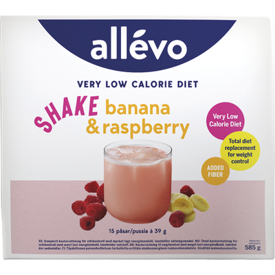 Allévo Shake Banana & Raspberry VLCD är den perfekta måltidsersättningen för viktkontroll. Shaken har ett mycket lågt energiinnehåll, samtidigt som den ger dig tillräcklig mängd näringsämnen. Du kan ersätta alla måltider med Allévo Shake genom att konsumera 5 portioner varje dag, som en kickstart i upp till 8 veckor.