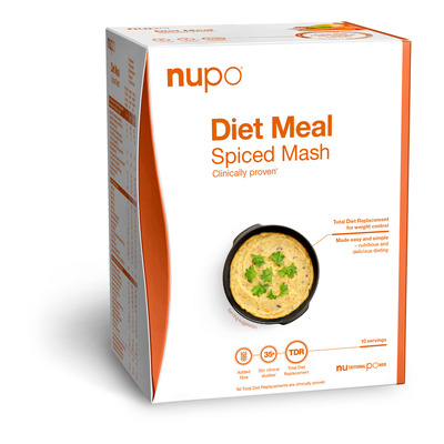Nupo Diet Meal Spiced Mash är en praktisk måltidsersättning med en klassisk potatismossmak med tillsatta kryddor och grönsaker. Varje portion innehåller endast 121 kcal och fungerar som en del av en TDR-plan (Total Diet Replacement). Potatismoset är kliniskt bevisat för viktkontroll och kan användas som enda näringskälla i upp till åtta veckor enligt anvisningarna. Nupo Spiced Mash är fri från gluten, laktos, ägg, soja och nötter och är både vegansk och vegetarisk.